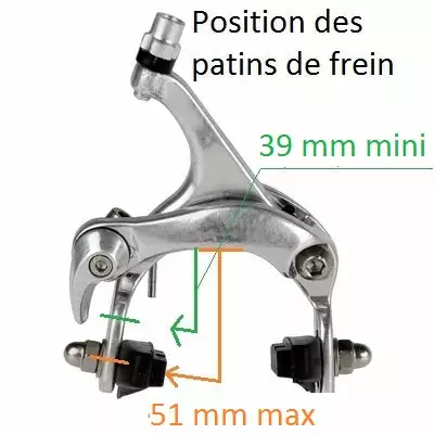 En aluminium, les étriers de frein sont prévus pour être montés sur des vélos de course ou de route. Le set de 350 g comprend un modèle avant et un modèle arrière. Les étriers sont ajustables entre 39 et 51 mm. Pour procéder à l’installation de ces freins, il faut que les trous dans lesquels passent la vis pour la fixation fassent au moins 6 mm de diamètre.