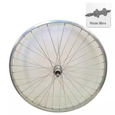La roue arrière 650A pour roue libre et de couleur argent est pensée pour équiper un vélo de route 650A ou 26 x 1 3/8 pouces qui dispose de freins à patins.