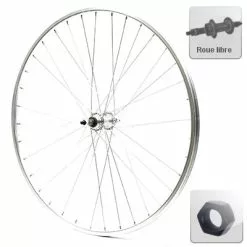 L’axe plein à écrous qui équipe la roue a un entraxe de 130 mm. Et la roue arrière a un moyeu qui accueille une roue libre de 5 à 7 vitesses. Les roues libres compatibles sont les suivantes :