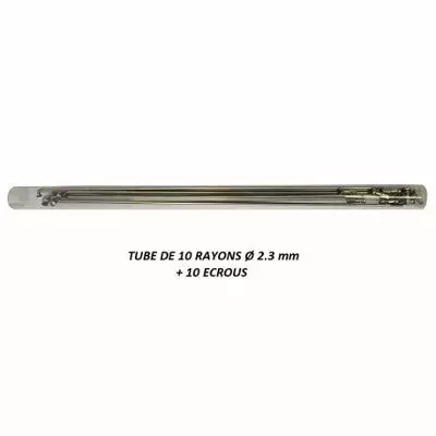 Les rayons de la marque CnSpoke sont de couleur argent et sont livrés par boîte de 10 pièces comprenant les 10 rayons et 10 écrous. Leur diamètre est de 2,3 mm. Ils sont plus épais que des rayons classiques de 2 mm, et donc plus résistants. Nous les conseillons pour les cyclistes ayant besoin de rayons costauds : en cas de longs voyages, sur des routes rocailleuses ou pour la pratique de BMX.