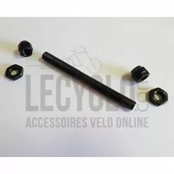 La roue pèse 900 grammes. L’axe de la roue mesure 118 mm et dispose d’une partie filetée sur un seul côté qui mesure 9,5 mm de diamètre et 1,8 cm de long. L’entraxe, sans le filetage, mesure 100 mm.