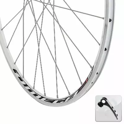 La largeur de la jante est de 13 mm pour un diamètre de 28 pouces. La roue est compatible avec des pneus d’une largeur comprise entre 18 et 25 mm (confère tableau). L’ETRTO des pneus doit être compris entre 18-622 et 25-622.