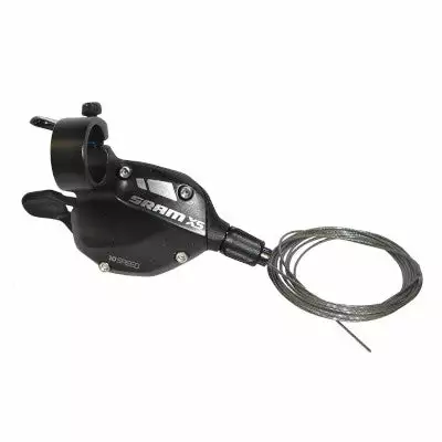 Ce levier de vitesses X5 de SRAM est compatible avec les dérailleurs arrières et les cassettes vélo 10 vitesses. Ce modèle de moyenne gamme de SRAM est précis, efficace et rapide. Il est optimisé pour les transmissions 2×10 et 3×10, donc avec un dérailleur avant pour pédalier double ou triple. Le changement de vitesses par trigger est actionné facilement du bout des doigts et du pouce. La manette est assez petite pour laisser tout l’espace nécessaire au levier de frein et à une poignée de vélo VTT confortable.