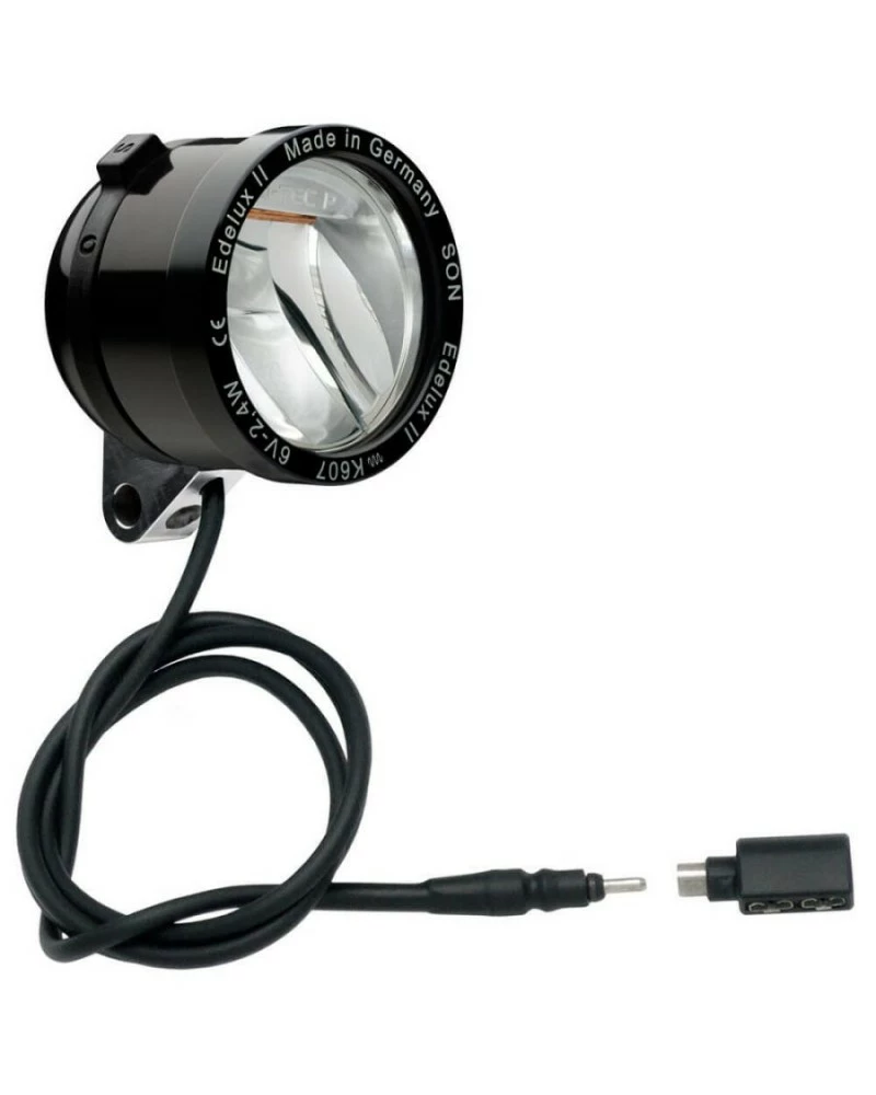 Phare SON Edelux II Ă LED pour moyeu dynamo, avec adaptateur coaxial.