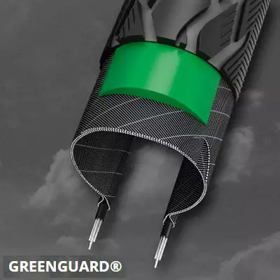 La gamme Energizer bénéficie de la technologie Greenguard, une sous-couche de 3 mm d’épaisseur faite de caoutchouc souple partiellement recyclé qui protège le pneu des petites perforations. Le pneu est doté d’une bande nervurée spécialement conçue pour donner toute sa puissance à une dynamo bouteille. Le pneu a une carcasse de 67 EPI.