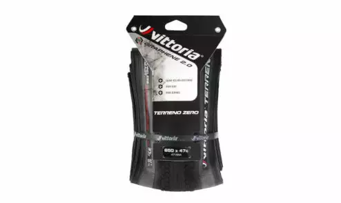 Le pneu Vittoria Terreno Zero TNT est disponible en 650 x 47C (ETRTO 47-584), ce qui correspond à du 27,5 pouces : 47 mm de largeur pour 584 mm de diamètre interne. Il est de couleur noir/gris et pèse environ 560 grammes.