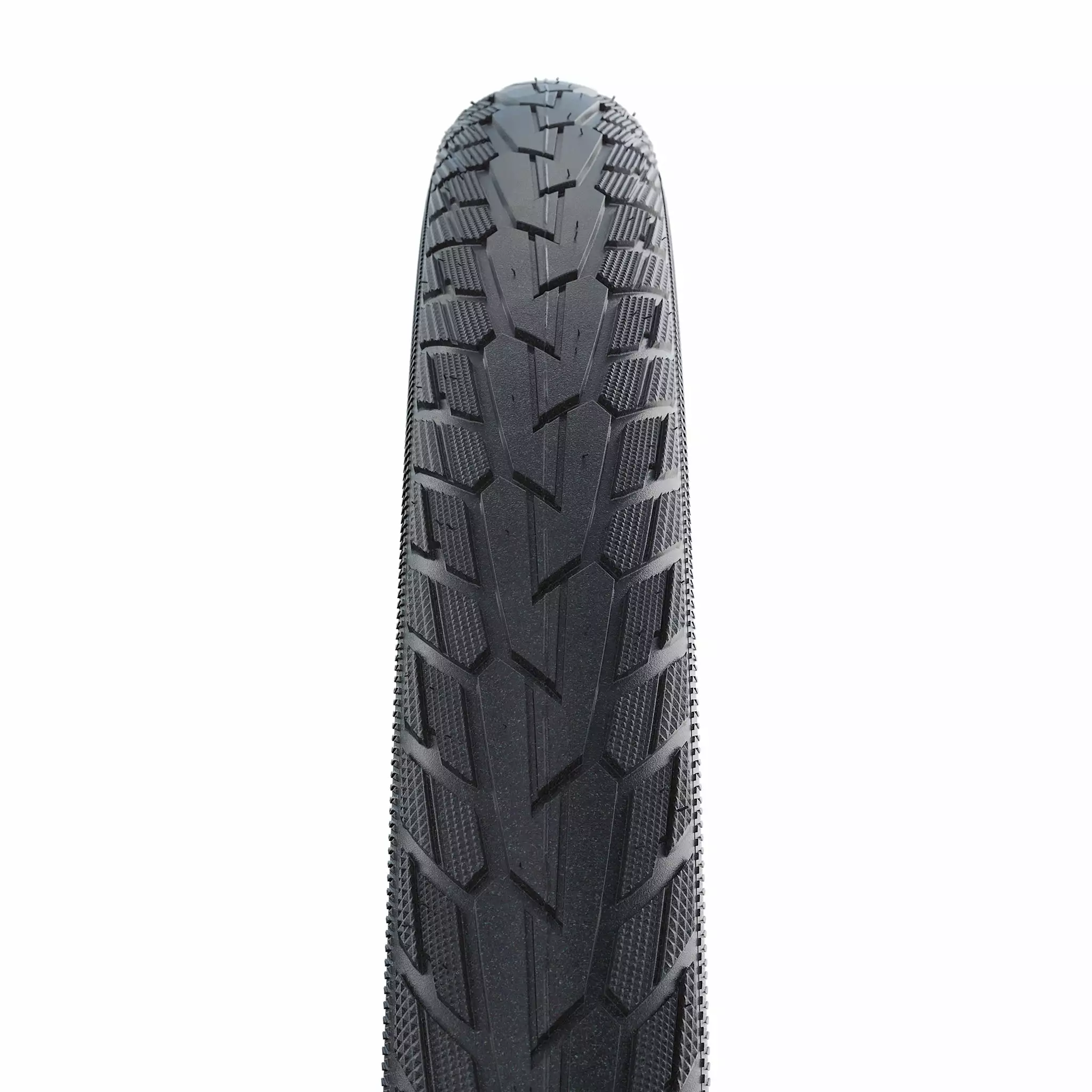 Le pneu à tringles rigides à la finition noire est idéal pour une utilisation urbaine et voyages. Ses flancs nervurés permettent un usage optimal d’une dynamo bouteille. Il ne pèse que 545 grammes et accueille une charge maximum de 75 kilos. La pression recommandée pour gonfler le pneu est comprise entre 3.00 et 5.00 Bar (45 – 70 psi). Comme tous les pneus Active Line, il est doté d’une carcasse haut de gamme de 50 Epi.
