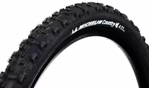 Le pneu Country AT est de couleur noir. Il est doté de tringles rigides. Il se monte à l’avant comme à l’arrière, pour une pression de gonflage minimum de 2 bar et maximum de 4 bar (29/48 psi). Son poids est de 680 grammes.