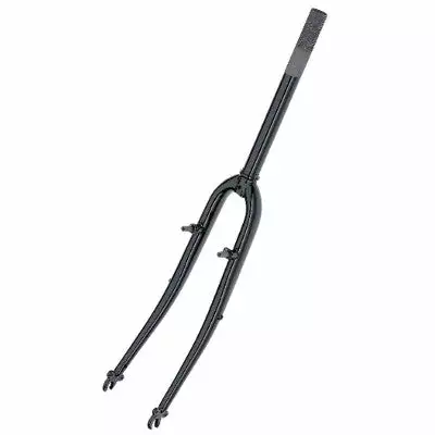 Nous proposons cette fourche 1″ à pivot fileté en 24 pouces. Aussi munie d’un pivot fileté 1″, est disponible la fourche vélo 28 pouces chrome avec support éclairage. Ainsi que la fourche cintrée en acier pour vélo de route 28 pouces.