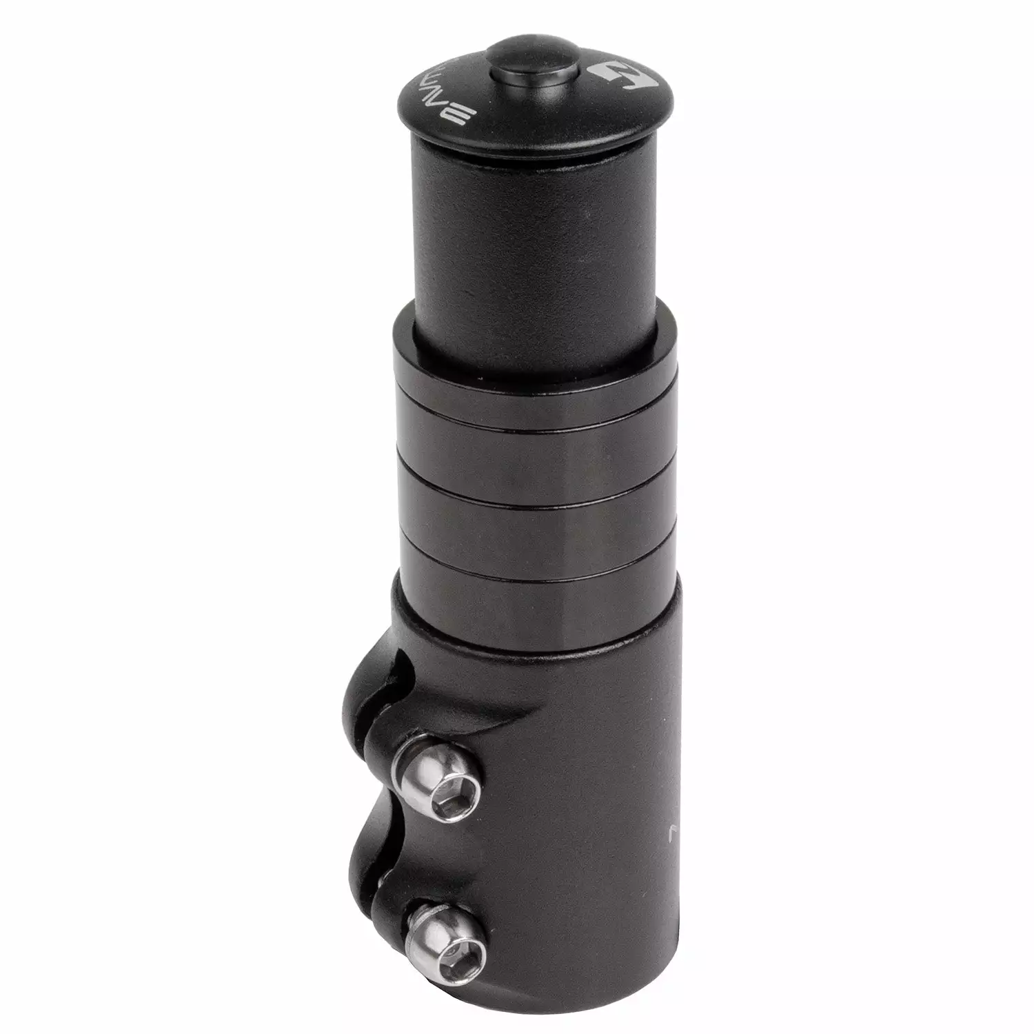 D’abord, l’adaptateur pour hauteur de potence ahead se place sur le tube de direction de 1′ 1/8″ (équivalent à 28.6 mm) de diamètre externe. L’attache prend 50 mm de haut, veillez à bien resserrer les deux vis par la suite. Fixez-y ensuite une potence aheadset compatible, donc de 1 1/8″, comme la potence aheadset 1 1/8″ Zoom. Puis ajustez votre montage avec une ou plusieurs entretoises fournies, en fonction de votre besoin. Chacune des 4 entretoises a une hauteur différente.