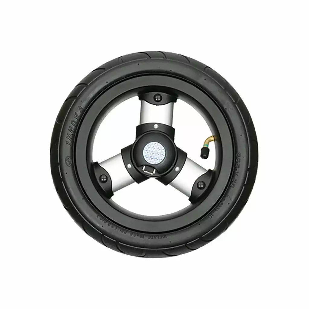 Avec sa jante à 3 bâtons doubles et son roulement à billes, cette roue gonflable 25 cm offre une utilisation à la fois stable et très confortable – les chocs sont bien amortis -, en plus d’un joli design.