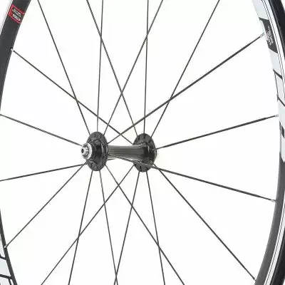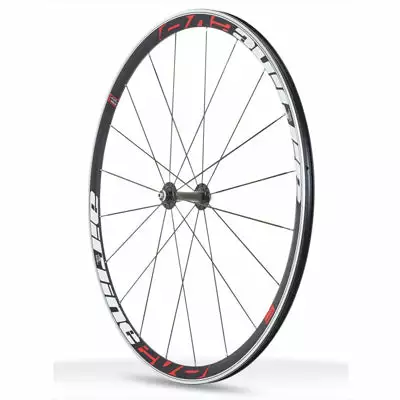 Les rayons noirs de la roue sont plats de 2 mm. Leur croisement permet une bonne résistance lors du freinage et de l’accélération. Leur tension rigidifie la jante et l’empêche de se déformer. La roue avant pèse 900 grammes. Elle est adaptée pour une pratique polyvalente du vélo, aussi bien dans les montées que sur du plat.