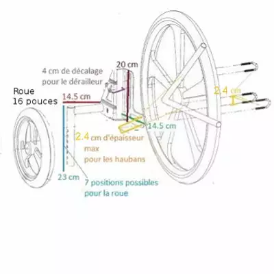 Ces roues stabilisatrices sont composées de roues de 12 pouces avec jantes en aluminium et garantissent ainsi beaucoup plus de confort que des roues pleines comme on en trouve communément. Une plaque en acier permet leur fixation sur le hauban et la base de votre vélo à travers trois points de fixation.
